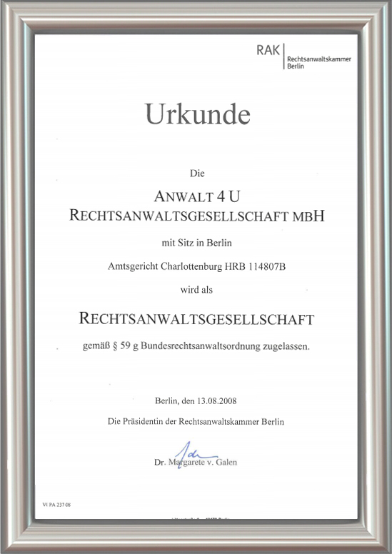 Die Anwaltskanzlei Anwalt4U ist seit 2008 erfolgreich auf dem deutschen Rechtsmarkt tätig. Über 17.000 Menschen haben in dieser Zeit qualifizierte rechtliche Unterstützung und kompetente Beratung erhalten.